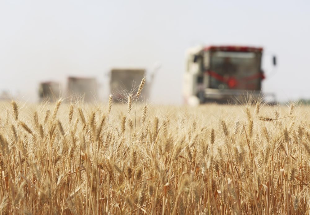 2025年6月10日,河北省石家庄市栾城区柳林屯乡东牛村村民驾驶农机收割小麦。