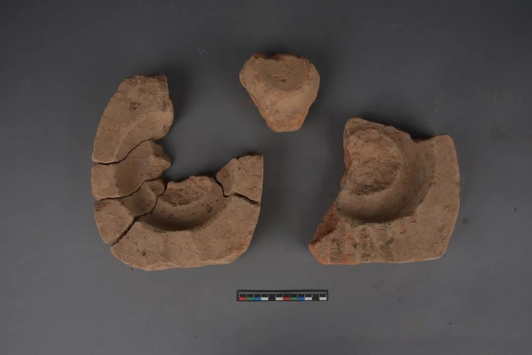 二是遗址西南角发现的一组制陶遗址,其中Y3、Y4、F2保存较好,出土了丰富的“公”字陶量和瓦当、瓦钉陶模,应是官营制陶作坊遗存,填补了东周王城遗址考古发现的空白。通过分析遗迹分布的空间位置关系及建筑单元内部相关遗存的布局情况,对复原研究东周时期手工业制作的工艺流程、作坊空间布局、建筑单元内部布局与功能区划,以及东周时期手工业发展水平及生产管理模式研究有重要的考古价值。陶量的发现对研究东周时期量器标准是重要的实物资料,为研究东周时期古代社会的经济结构、税收制度、农业和手工业的发展提供证据,同时能帮助我们了解不同地区和时期之间度量衡的演变和差异,进而揭示文化交流和传播的线索。